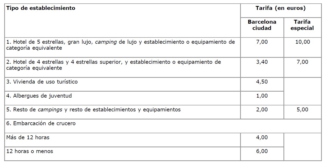 La tarifa aplicable a partir del 1 de abril de 2026 para Barcelona ciudad y la tarifa especial son las siguientes: