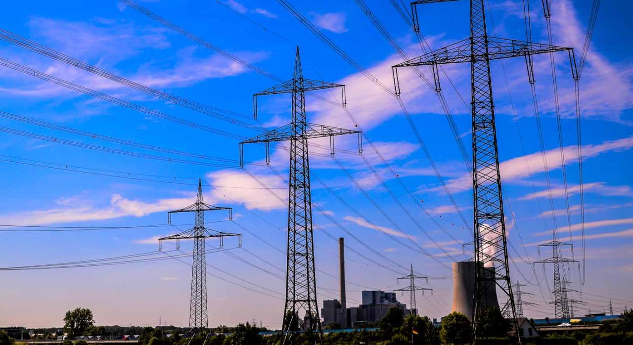 Bizkaia modifica el modelo 591: Impuesto sobre el Valor de la Producción de la Energía Eléctrica. Torre de alta tensión con un cable que sale de ella en un cielo azul con nubes