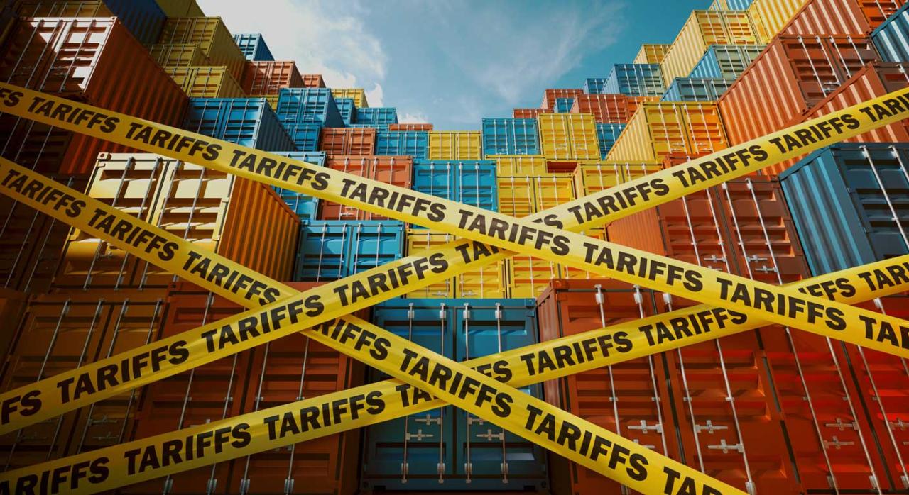 El Consejo de la UE da luz verde definitiva a las nuevas normas sobre derechos de aduana para los paquetes pequeños. Imagen de contenedores bloqueados con cintas de advertencia